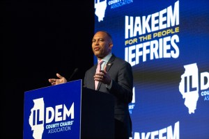 U.S. House Minority Leader Hakeem Jeffries gives a keynote address at the Illinois Democratic County Chairs’ Association brunch in Springfield on Wednesday, Aug. 13, 2025. The event is the largest annual downstate gathering of Illinois Democrats. (Capitol News Illinois photo by Jerry Nowicki) Article Summary U.S. House Minority Leader Hakeem Jeffries, D-New York, was the…
